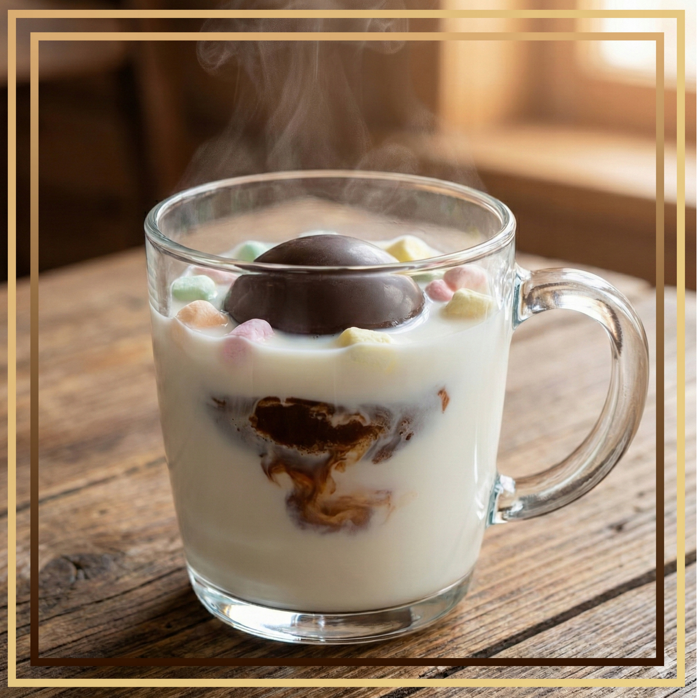 Efektowny sposób przygotowania – kula rozpuszcza się spektakularnie w gorącym mleku.
