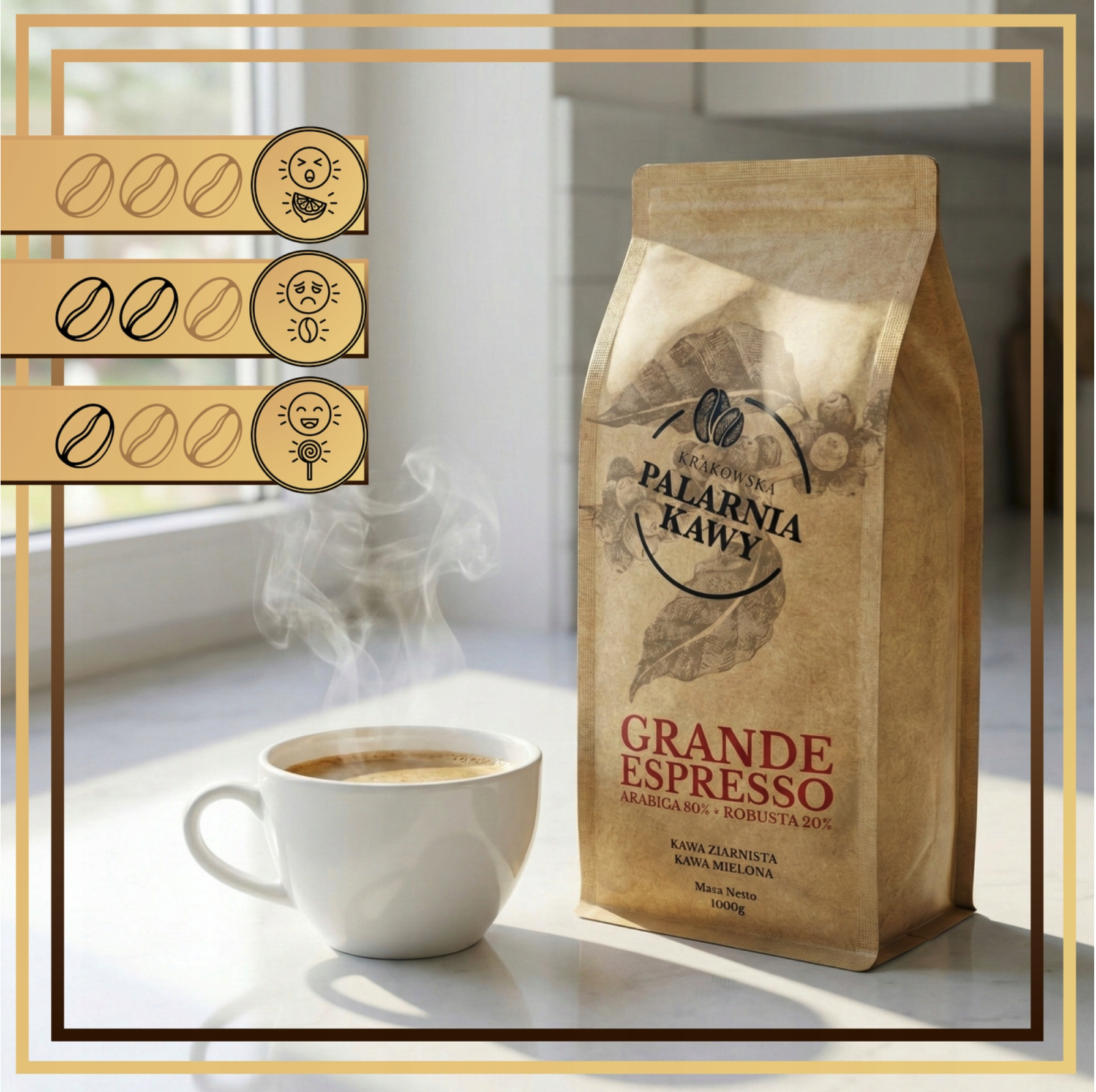 - Kawa świeżo palona: 100%