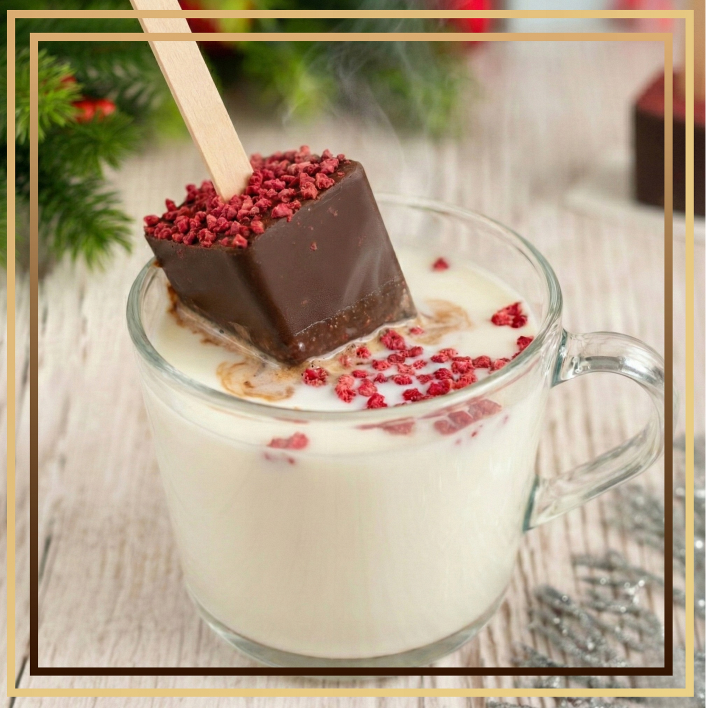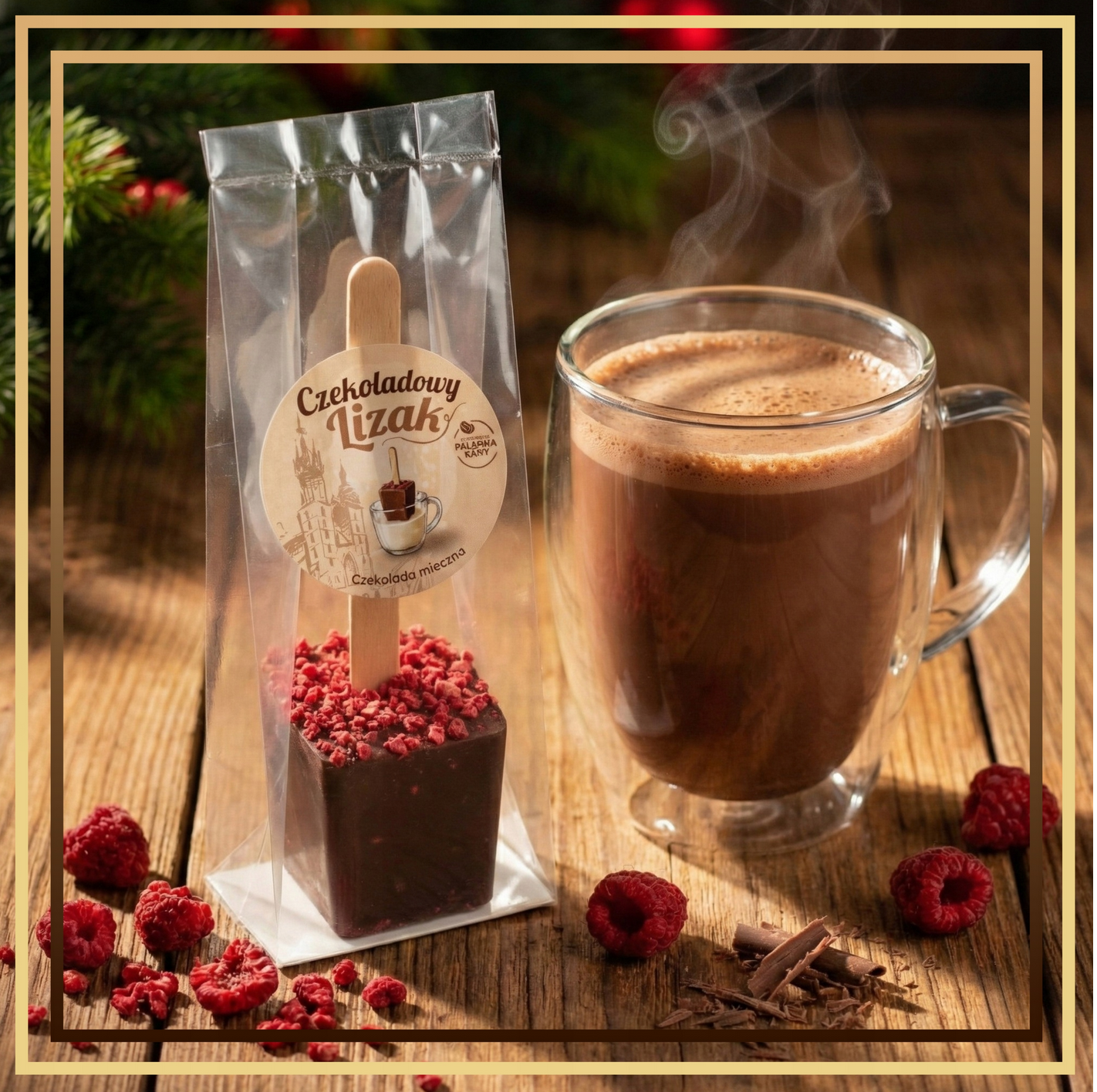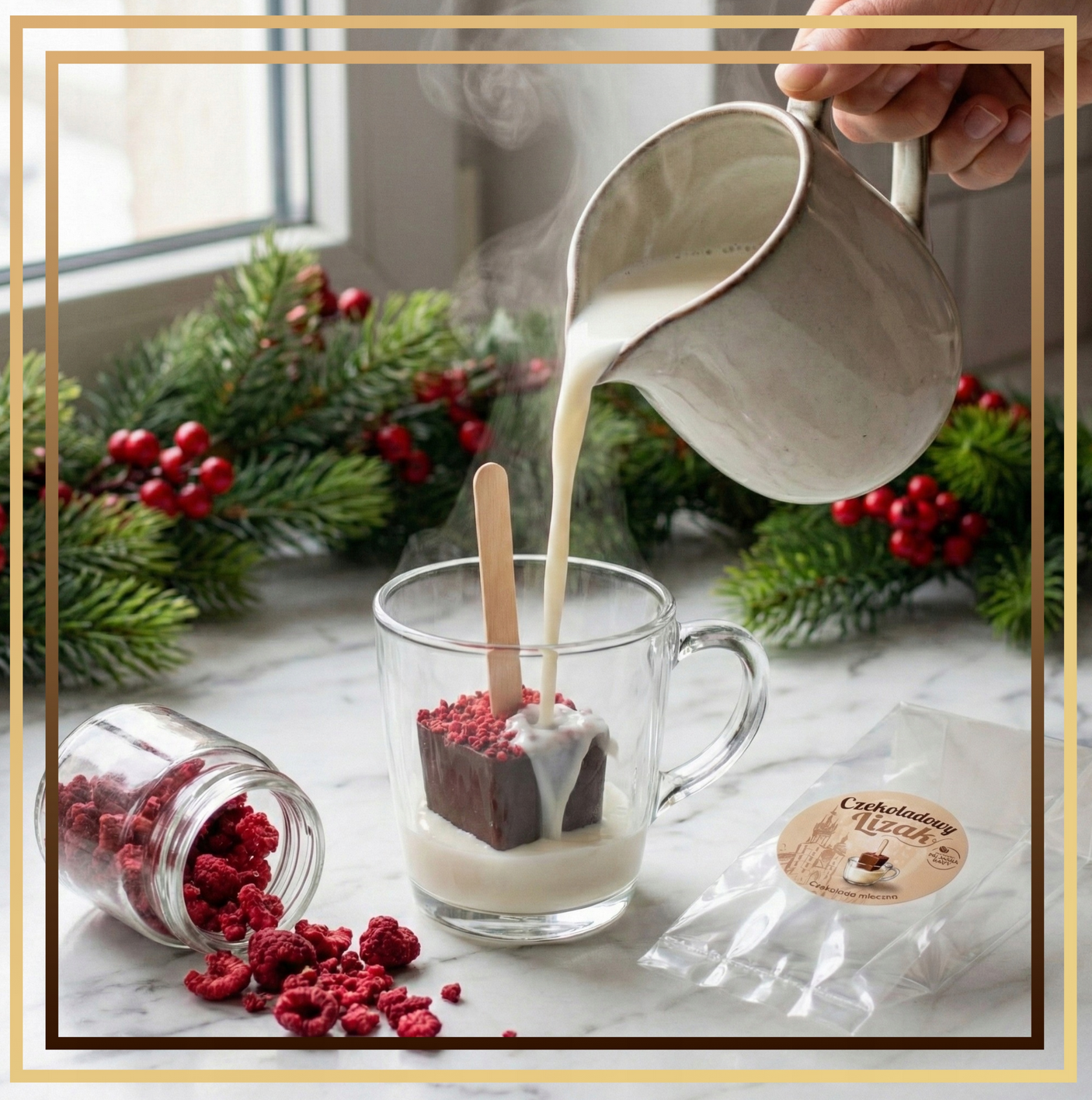 Choco Stick z mlecznej czekolady i liofilizowanej maliny to słodka chwila zapomnienia zamknięta w eleganckiej kostce. Po otwarciu opakowania poczujesz kremowy aromat kakao, przełamany intensywną malinową świeżością. Kolorowe drobiny malin dodają wizualnego uroku, a po rozpuszczeniu nadają napojowi delikatną owocową nutę, podkręcając całą kompozycję. To idealny wybór na zimowe wieczory, świąteczne spotkania i momenty, w których chcesz podarować sobie czystą słodycz i ciepło.